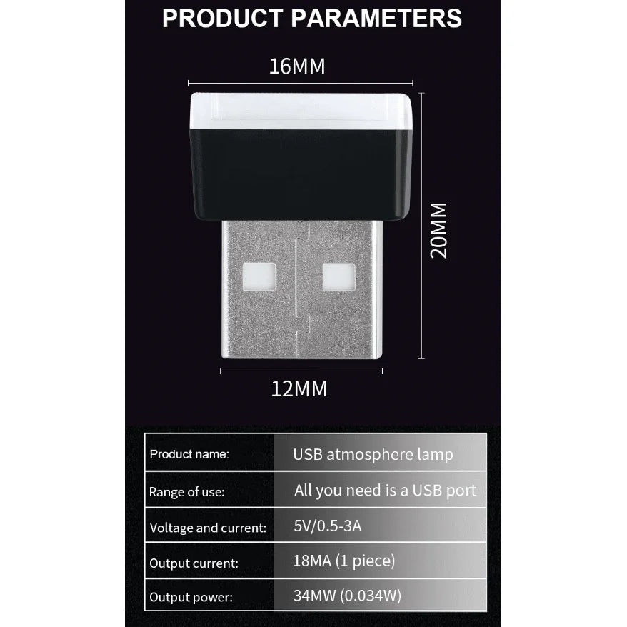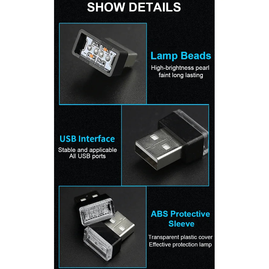 3x Mini Blue LED USB Car Interior Light Neon Atmosphere Ambient Lamp Accessories
